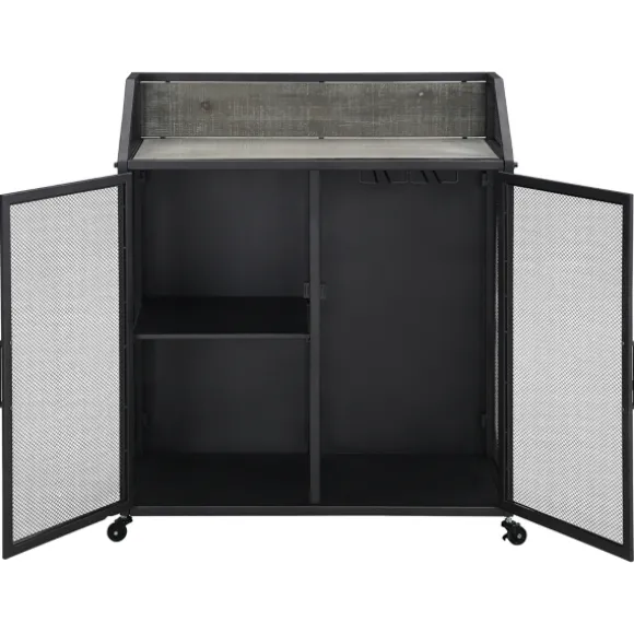 Organize Your Bar Accessories With Style And Ease With This Gray And Black Mesh 2-Door Bar Cart. With Its Chic, Moveable…