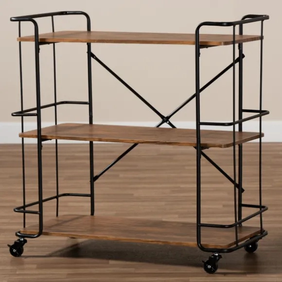 Kirkland’s Home Kitchen Islands & Bar Carts-Nellie Walnut 3-Tier Mobile Bar Cart