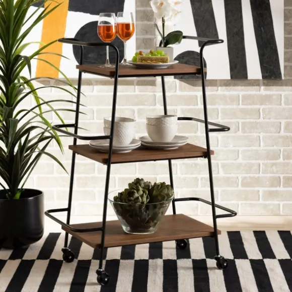 Make That Awkward Corner In Your Dining Room More Useful! Our Norris Walnut 3-Tier Mobile Bar Cart Is Perfect For Displaying Your Favorite Bottles Of Whiskey And Wine. Cart Measures 29L X 16W X 37H In.Crafted With A Metal Frame And Wood Composite Surfacesblack And Walnut Brown Finishfeatures A Three-Tiered Designincludes Caster Wheels And Side Railsassembly Requirednot Intended For Commercial Usecare: Dust With A Soft, Dry Cloth. Not Safe For Outdoor Use.This Item Is Available At Kirklands.Com Only, Not Available In Stores. Please Note: This Item Cannot Be Shipped To Apo/Fpo Addresses.Warning:This Product Can Expose You To Chemicals Including Formaldehyde And Phthalate Which Are Known To The State Of California To Cause Cancer And Birth Defects Or Other Reproductive Harm.For More Information Go Towww.P65Warnings.Ca.Gov .