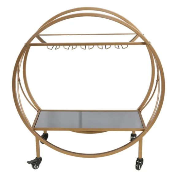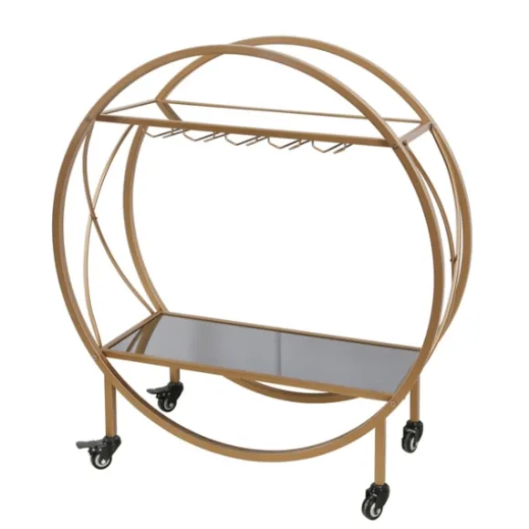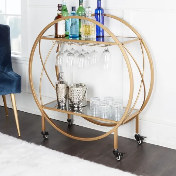 Create Your Very Own Home Bar With This Round Gold Mirrored Shelves Bar Cart. With Its Double Shelves And Rolling Design, It’S Perfect For Serving Guests Drinks And Snacks! Plus, It’S Great For Smaller Spaces! Bar Cart Measures 38.75L X 14W X 36H In.Crafted Of Metal And Glassgold Finishfeatures Two (2) Mirrored Shelves And A Wine Glass Rackround Framefeatures Four (4) Wheels For Rolling Designweight Capacity: 44 Lbs.Assembly Requirednot Intended For Commercial Usecare: Dust With A Soft, Dry Cloth.This Item Is Available At Kirklands.Com Only, Not Available In Stores. Please Note: This Item Cannot Be Shipped To Apo/Fpo Addresses.