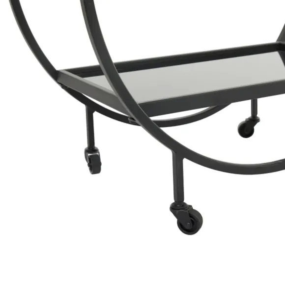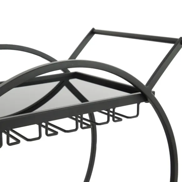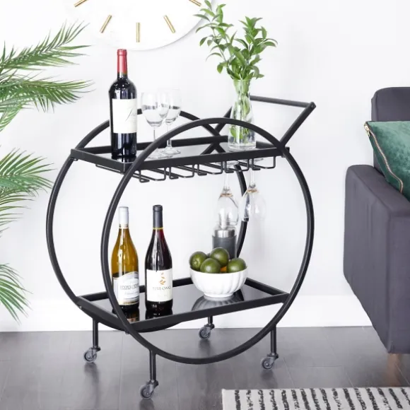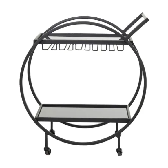 The Round Black Metal And Glass 2-Ter Bar Cart Will Gorgeously Spotlight Your Favorite Wines And Cocktail Essentials. Roll It Throughout Your Gathering Space At Your Next Dinner Party! Cart Measures 28L X 14W X 31H In.Crafted Of Metal And Glassblack Finishtinted Black Glass Shelf Finishfeatures Two (2) Shelves And A Wine Glass Rackrolling Designweight Capacity: 30 Lbs.Assembly Requirednot Intended For Commercial Usecare: Dust With A Soft, Dry Cloth.This Item Is Available At Kirklands.Com Only, Not Available In Stores. Please Note: This Item Cannot Be Shipped To Apo/Fpo Addresses.