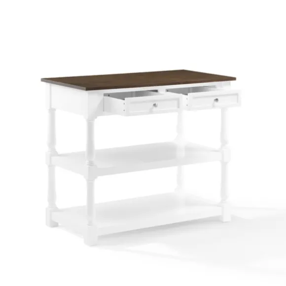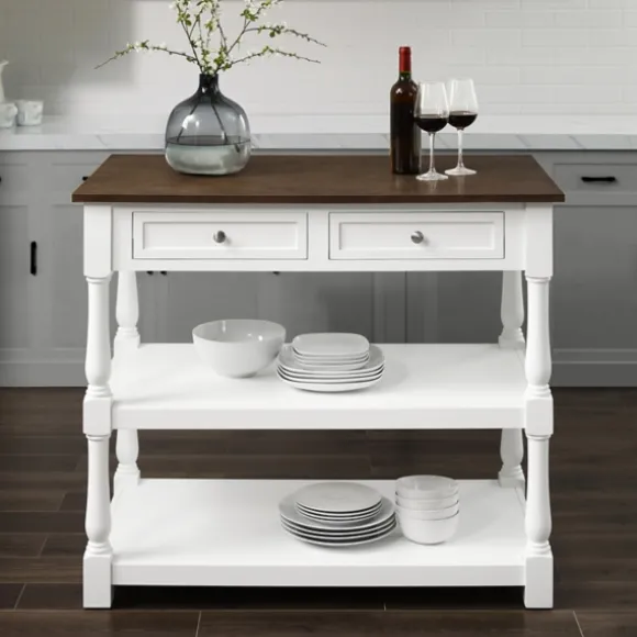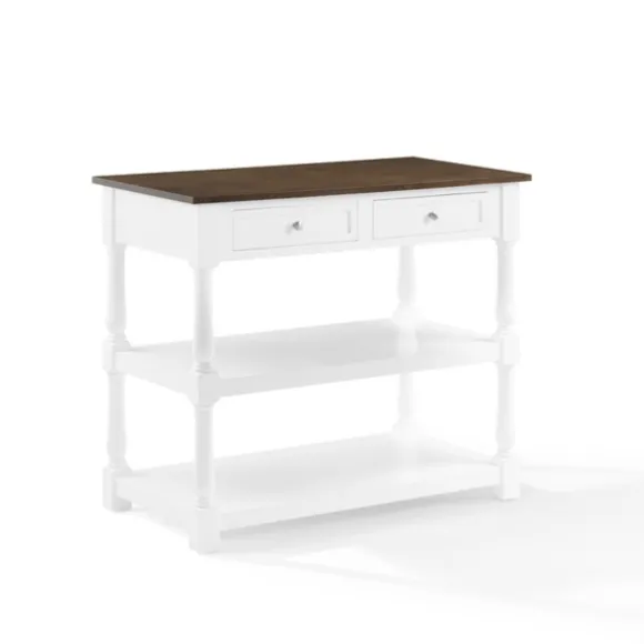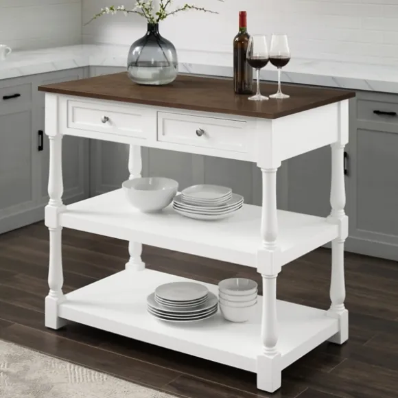 Bring Some Extra Counter Space Into Your Kitchen With This White And Brown Wood Kitchen Island. Its Ample Drawer And Shelf Space Is Perfect For Keeping Utensils And Cooking Essentials Readily Available!Island Measures 42L X 23.63W X 36.25H In.Crafted Of Woodwhite Finishbrown Tabletop Finishfeatures Two (2) Pass Through Drawers And Two (2) Open Shelvesturned Legstop Weight Capacity: 100 Lbs.Drawer Weight Capacity: 15 Lbs.Shelf Weight Capacity: 20 Lbs.Assembly Requirednot Intended For Commercial Usecare: Dust With A Soft, Dry Cloth.This Item Is Available At Kirklands.Com Only, Not Available In Stores. Please Note: This Item Cannot Be Shipped To Apo/Fpo Addresses.Warning:This Product Can Expose You To Chemicals Including Wood Dust And Lead, Which Is Known To The State Of California To Cause Cancer And Birth Defects Or Other Reproductive Harm.For More Information Go Towww.P65Warnings.Ca.Gov .