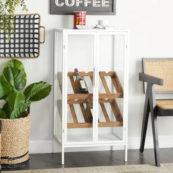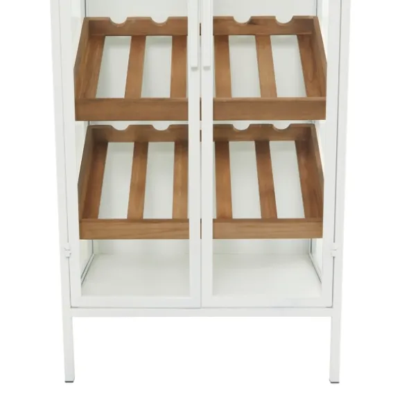 The White Metal And Natural Wood 2-Door Bar Cabinet Is A Must-Have For Any Party Host. Styled In Your Dining Room, It Makes The Perfect Hub For All Your Cocktail Essentials! Cabinet Measures 21L X 14W X 41H In.Crafted Of Metal, Glass, And Woodwhite Metal Frame Finishnatural Wood Finish On Wine Bottle Holdersclear Glass Door Finishfeatures Two (2) Glass Doors, Two (2) Wine Bottle Shelves, And Four (4) Wine Glass Racksweight Capacity: 100 Lbs.No Assembly Requirednot Intended For Commercial Usecare: Dust With A Soft, Dry Cloth.This Item Is Available At Kirklands.Com Only, Not Available In Stores. Please Note: This Item Cannot Be Shipped To Apo/Fpo Addresses.