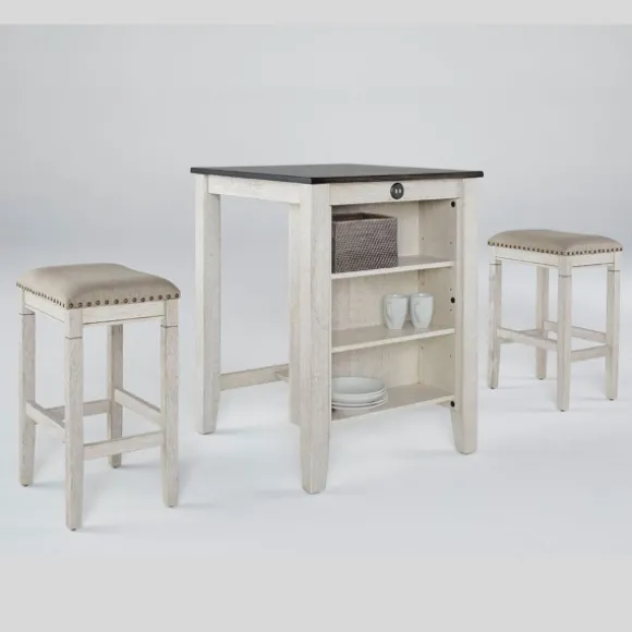 Kirkland’s Home Kitchen Islands & Bar Carts-White Wood Linen 3-Pc. Usb Island And Stool Set