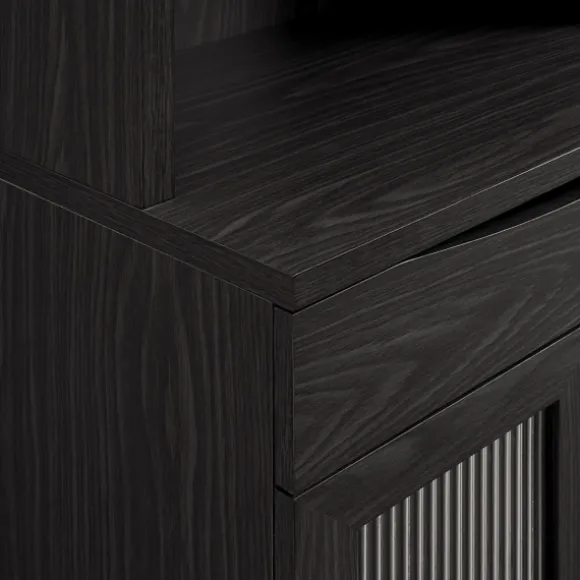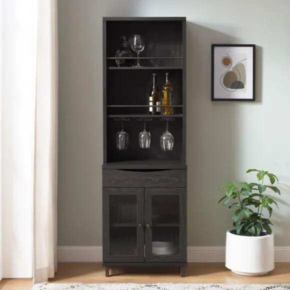 Dedicate A Space For All Your Wine And Cocktail Essentials! The Black Wood And Glass 2-Door Bar Cabinet Features Fluted Glass Doors, Stemware Racks, And Spacious Shelves. It’S Sure To Make An Elegant, Modern Presencein Your Home. Cabinet Measures 23.25L X 12.25W X 72.13H In.Crafted Of Wood Composite And Tempered Glassblack Wood Finishfeatures Three (3) Exterior Shelves, Three (3) Stemware Racks, And One (1) Drawerincludes Two (2) Interior Shelves Behind Two (2) Glass Doorsfluted Glass Door Designsshelves Are Detailed With Fitted Barshanging Stemware Racks Fit Up To 6 Glassesweight Capacity: 100 Lbs.Assembly Requirednot Intended For Commercial Usecare: Dust With A Soft, Dry Cloth.This Item Is Available At Kirklands.Com Only, Not Available In Stores. Please Note: This Item Cannot Be Shipped To Apo/Fpo Addresses.Warning:This Product Can Expose You To Chemicals Including Dust And Phthalates Which Is Known To The State Of California To Cause Cancer And Birth Defects Or Other Reproductive Harm.For More Information Go Towww.P65Warnings.Ca.Gov .