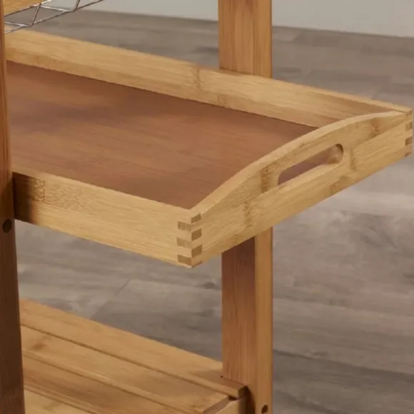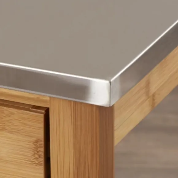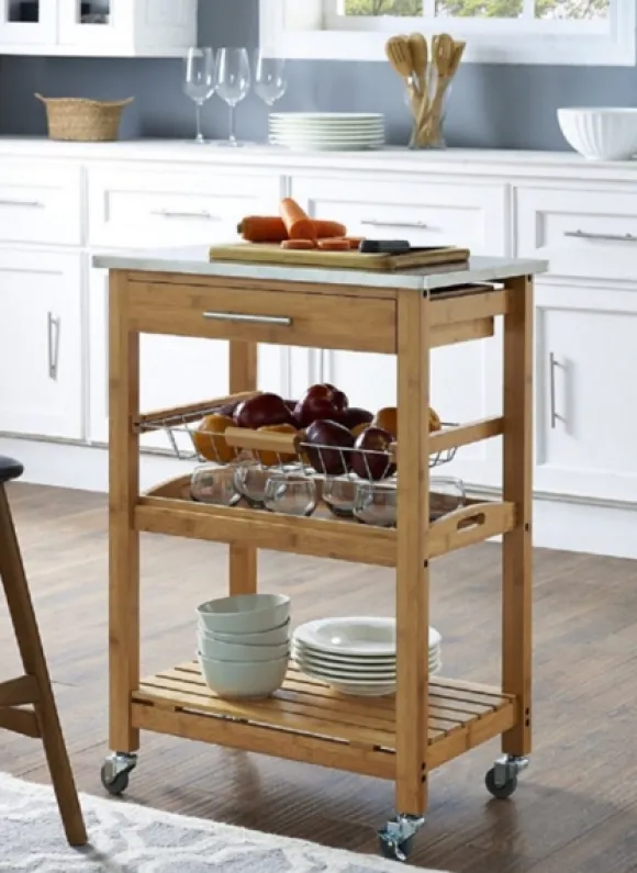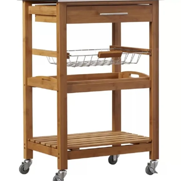 Create Extra Storage And Counter Space In Your Kitchen With This Wood And Stainless Steel 3-Tier Kitchen Cart. Its Steel Top Is Perfect For Prepping Meals, While Its Drawer And Shelves Will Keep Your Kitchen Accessories Organized And Readily Available! Cart Measures 22.75L X 15.75W X 33.5H In.Crafted With A Bamboo Wood Framenatural Finishstainless Steel Topfeatures One (1) Drawer, One (1) Metal Wire Basket, And Two (2) Lower Shelvesincludes Four (4) Caster Wheelstop Shelf Weight Capacity: 114 Lbs.Middle Shelf Weight Capacity: 94.5 Lbs.Bottom Shelf Weight Capacity: 103.5 Lbs.Assembly Requirednot Intended For Commercial Usecare: Dust With A Soft, Dry Cloth.This Item Is Available At Kirklands.Com Only, Not Available In Stores. Please Note: This Item Cannot Be Shipped To Apo/Fpo Addresses.Warning:This Product Can Expose You To Chemicals Including Formaldehyde Gas Which Is Known To The State Of California To Cause Cancer And Birth Defects Or Other Reproductive Harm.For More Information Go Towww.P65Warnings.Ca.Gov .