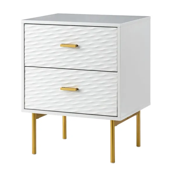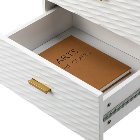 Glamorize Your Modern Bedroom With The Chic Texture Of Our White And Gold Wave Nightstand! Accented With Golden Hardware And Legs, This Piece Is Sure To Make A Statement In Any Space. Nightstand Measures 19.7L X 15.7W X 25.2H In.Crafted Of Wood Compositeanti-Scratch White Finish With Gold Hardware And Legsfacing Features A Wavy Embossed Textureincludes Two (2) Drawersassembly Requirednot Intended For Commercial Usecare: Wipe With Soft, Damp Cloth.This Item Is Available At Kirklands.Com Only, Not Available In Stores. Please Note: This Item Cannot Be Shipped To Apo/Fpo Addresses.