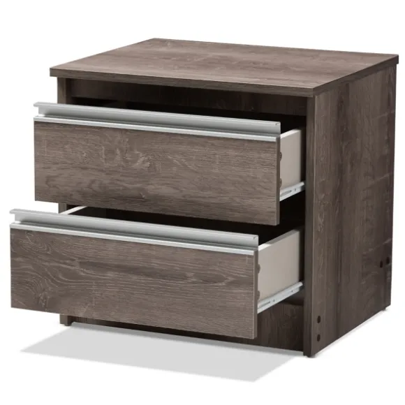 This Brown Oak Wood Finish 2-Drawer Nightstand Will Add Contemporary-Chic Character To Your Bedroom! Featuring A Weathered Oak Finish, It Will Look Lovely With Rustic Wooden Decor. Nightstand Measures 19.1L X 15.8W X 18.1H In.Crafted Of Engineered Wood, Wood Composite, And Metalbrown Oak Wood Finishsilver Metal Drawer Pull Finishfeatures Two (2) Drawerssquare Shapedassembly Requirednot Intended For Commercial Usecare: Dust With A Soft, Dry Cloth.This Item Is Available At Kirklands.Com Only, Not Available In Stores. Please Note: This Item Cannot Be Shipped To Apo/Fpo Addresses.Warning:This Product Can Expose You To Chemicals Including Formaldehyde And Phthalate Which Is Known To The State Of California To Cause Cancer And Birth Defects Or Other Reproductive Harm.For More Information Go Towww.P65Warnings.Ca.Gov .