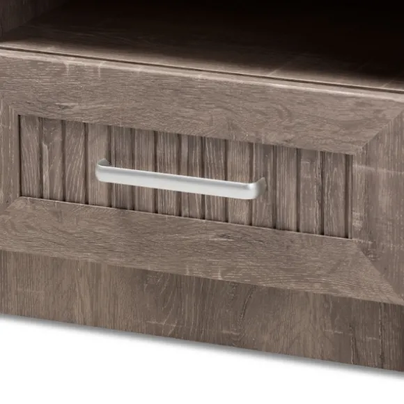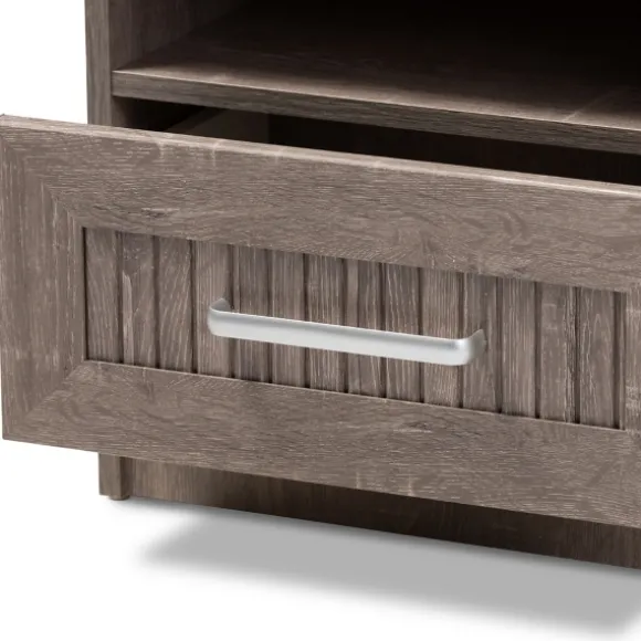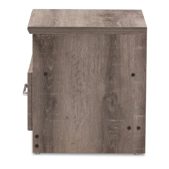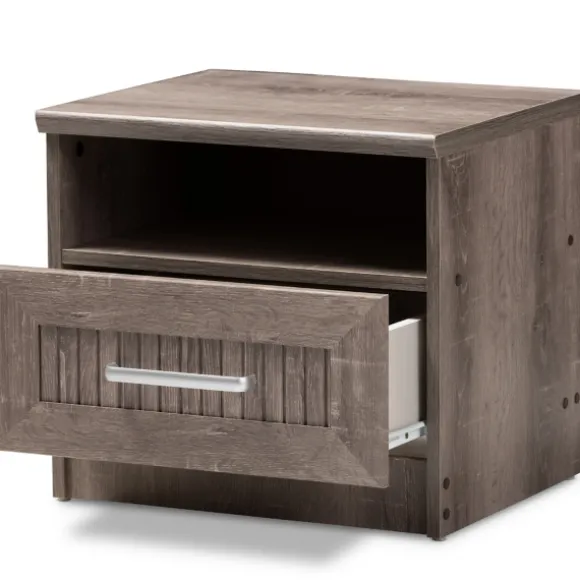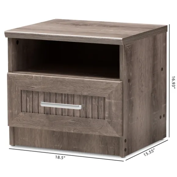 Complete Your Contemporary-Inspired Bedroom With This Brown Oak Wood Finish Open Shelf Nightstand. Featuring A Weathered…