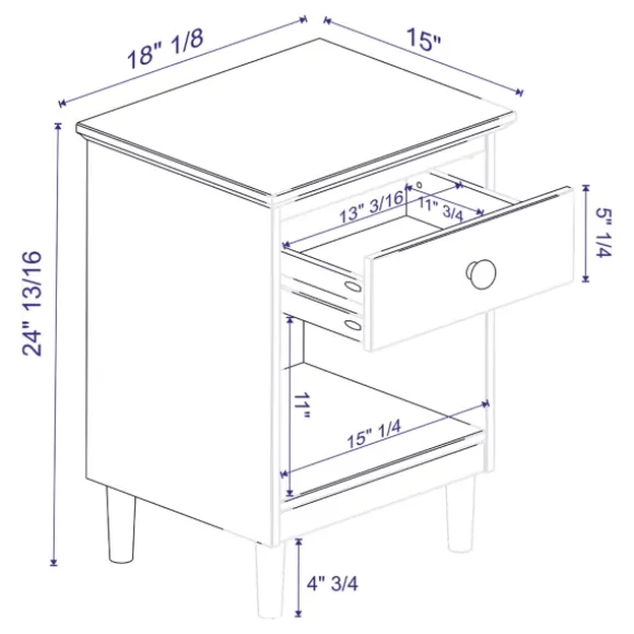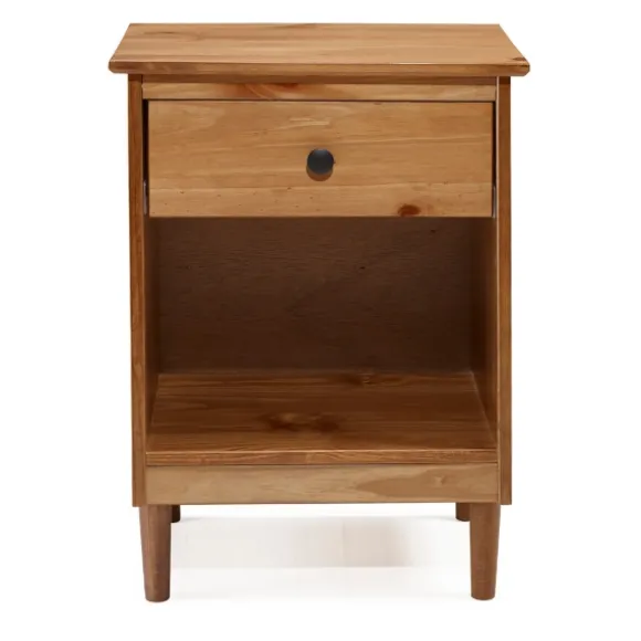 Complete Your Elegant, Contemporary Bedroom With The Caramel One-Drawer Wood Nightstand! Its Caramel Finish Adds A Rich Touch To Your Bedroom Decor.Nightstand Measures 18L X 15W X 25H In. Crafted Of Solid Pine Wood, Wood Composite, Plastic, And Metal Caramel Woodgrain Finish Features One (1) Drawer And One (1) Cubby Hole Mid-Century Inspired Tapered Legs Black Knob Hardware Full Assembly Required Not Intended For Commercial Use Care: Dust With A Soft, Dry Cloth. Avoid Using Chemical Or Abrasive Cleaners As They May Damage The Finish.This Item Is Available At Kirklands.Com Only, Not Available In Stores. Please Note: This Item Cannot Be Shipped To Apo/Fpo Addresses.