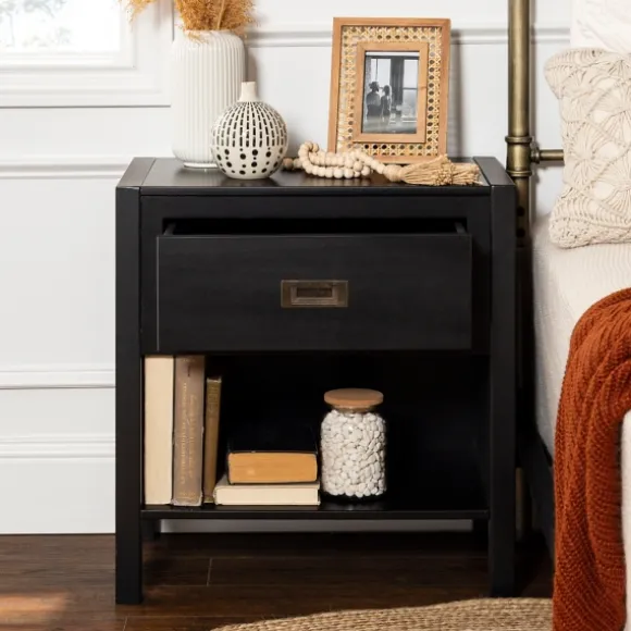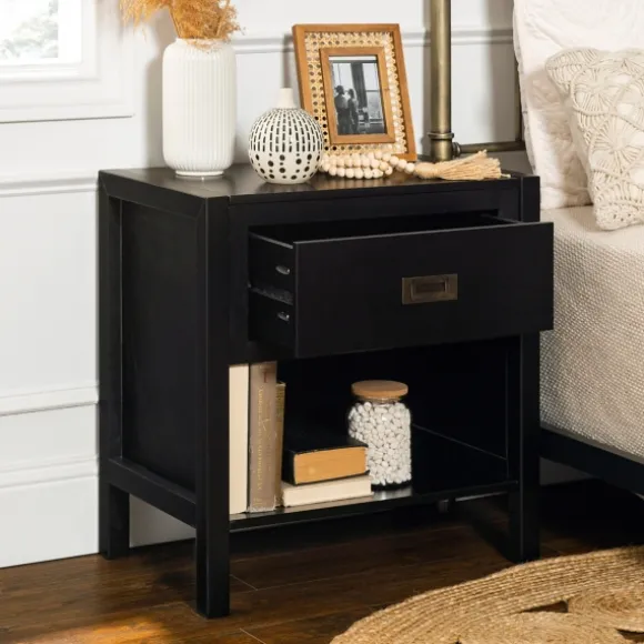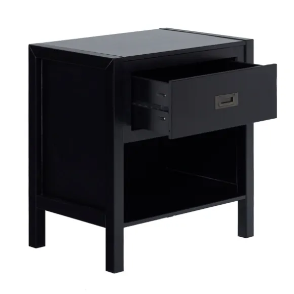 You Can Never Go Wrong With Simply Designed Furniture! This Black Classic 1-Drawer Nightstand Features A Spacious Drawer And A Bottom Shelf For Storage.Nightstand Measures 24L X 16W X 25H In. Crafted Of Solid Pine Wood With Wood Composite Backer And Drawer Bottoms And Metal Hardware Black Finish Aged Silver Hardware Finish Features One (1) Drawer And One (1) Bottom Shelf Drawer Measures 16.75L X 13W X 6.5H In. Weight 29 Lbs. Weight Capacity: 75 Lbs. Full Assembly Required Not Intended For Commercial Use Care: Dust With A Soft, Dry Cloth. This Item Is Available At Kirklands.Com Only, Not Available In Stores. Please Note: This Item Cannot Be Shipped To Apo/Fpo Addresses.
