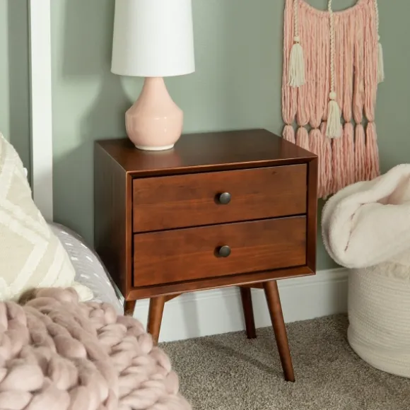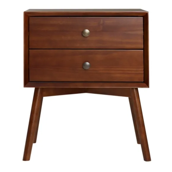 Our Walnut 2-Drawer Mid-Century Modern Nightstand Is The Finishing Touch Your Mid-Century Modern Space Needs. With Two Drawers For All Your Storage Needs, This Walnut Nightstand Is A Must Have Fashionable And Functional Piece. Nightstand Measures 20L X 14W X 24H In. Crafted Of Solid Pine Wood With Wood Composite And Metal Walnut Finish Antique Metal Hardware Features Two (2) Drawers Features Beveled Front Details Full Assembly Required Not Intended For Commercial Use Care: Dust With A Soft, Dry Cloth.This Item Is Available At Kirklands.Com Only, Not Available In Stores. Please Note: This Item Cannot Be Shipped To Apo/Fpo Addresses.