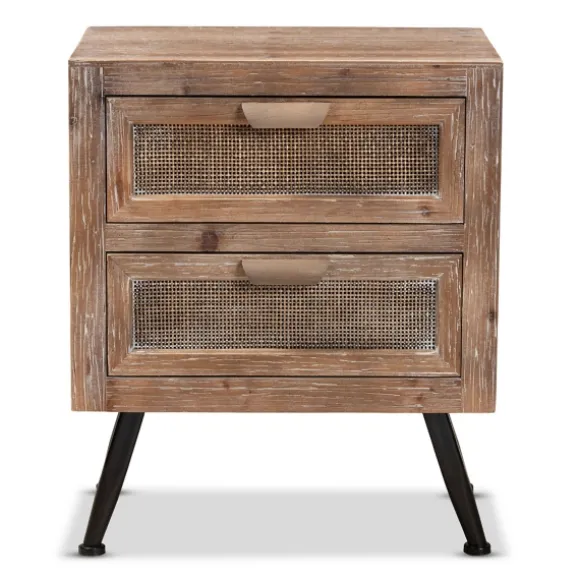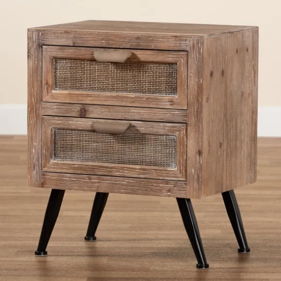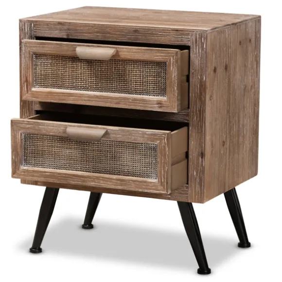 Complete Your Bedroom With This Brown Wood And Rattan 2-Drawer Nightstand. You’Ll Love The Convenience Of Having Some Extra Storage Right Next To Your Bed! Plus, Its Rustic, Modern Style Will Complement Your Decor! Nightstand Measures 18.9L X 13.8W X 22.8H In.Crafted Of Wood, Wood Composite, Rattan, And Metalwhitewashed Brown Finishfeatures Two (2) Drawerswoven Rattan Drawer Facesblack, Angled Legsfeatures Curved Handlesassembly Requirednot Intended For Commercial Usecare: Dust With A Soft, Dry Cloth.This Item Is Available At Kirklands.Com Only, Not Available In Stores. Please Note: This Item Cannot Be Shipped To Apo/Fpo Addresses.Warning:This Product Can Expose You To Chemicals Including Formaldehyde And Phthalate, Which Is Known To The State Of California To Cause Cancer And Birth Defects Or Other Reproductive Harm.For More Information Go Towww.P65Warnings.Ca.Gov .