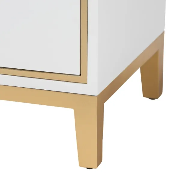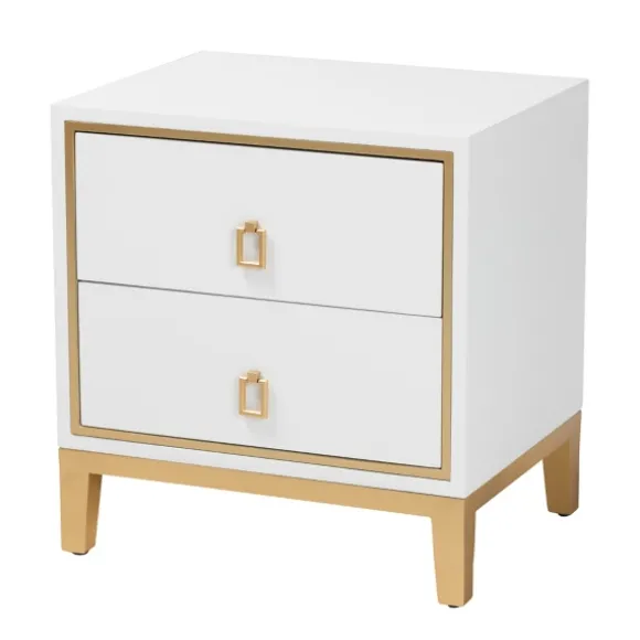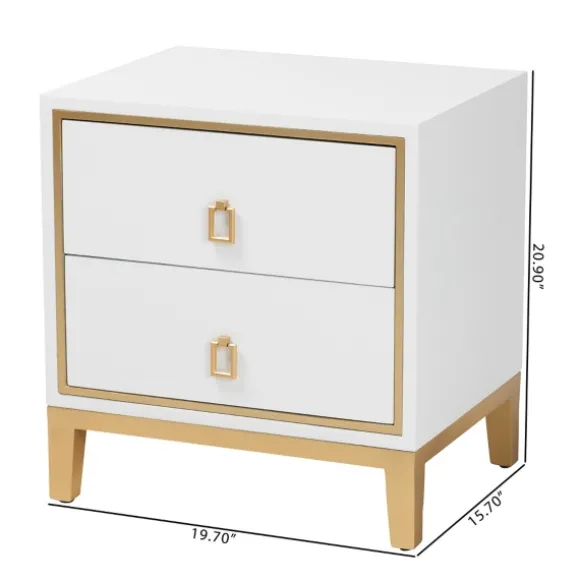 Bring A Glam Element Into Your Bedroom With This White Wood & Gold Accent 2-Drawer Nightstand. Featuring Geometric Embellishments And A Two Tone Finish, It Flaunts A Sleek, Modern Design. Nightstand Measures 19.7L X 15.7W X 20.9H In.Crafted Of Engineered Wood And Metalwhite Finishfeatures Two (2) Drawersaccented With Gold Metal Hardwaresquare Shapetapered Legsno Assembly Requirednot Intended For Commercial Usecare: Dust With A Soft, Dry Cloth.This Item Is Available At Kirklands.Com Only, Not Available In Stores. Please Note: This Item Cannot Be Shipped To Apo/Fpo Addresses.Warning:This Product Can Expose You To Chemicals Including Formaldehyde And Phthalate Which Is Known To The State Of California To Cause Cancer And Birth Defects Or Other Reproductive Harm.For More Information Go Towww.P65Warnings.Ca.Gov .