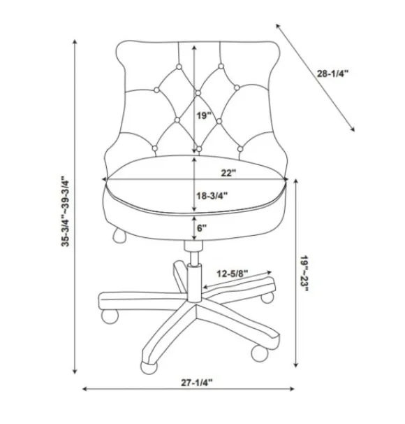 Our Sleek, Chic Natural Miller Tufted Office Chair Will Add A Unique Touch Of Style To Your Space. Its Neutral Finish Adds A Comfortable, Practical Feel You’Ll Love!Chair Measures 27.25L X 28.25W X 35.75-39.75H In.Seat Height Adjusts Between 19-23 In.Dark Walnut Wood Base Finishupholstered In Natural Beige Fabricrolled Back Designburnished Silver Nailhead Trimtufted Back And Cushioned Seatlever For Adjustable Heightmetal Castors Provide Easy Mobilityweight Limit: 275 Lbs.Assembly Requirednot Intended For Commercial Usecare: Spot Clean As Needed.This Item Is Available At Kirklands.Com Only, Not Available In Stores. Please Note: This Item Cannot Be Shipped To Apo/Fpo Addresses.Warning:This Product Can Expose You To Chemicals Including Di-(2-Ethl Hexyl) Phthalate Which Is Known To The State Of California To Cause Cancer And Birth Defects Or Other Reproductive Harm.For More Information Go Towww.P65Warnings.Ca.Gov .