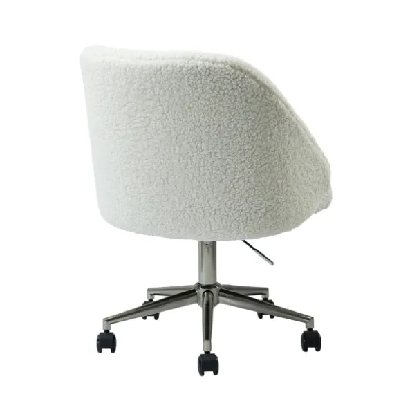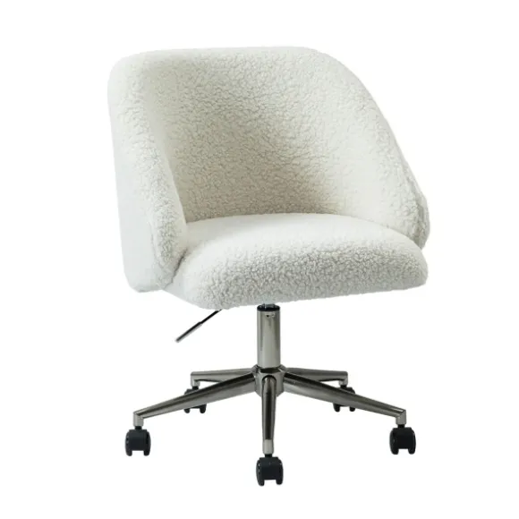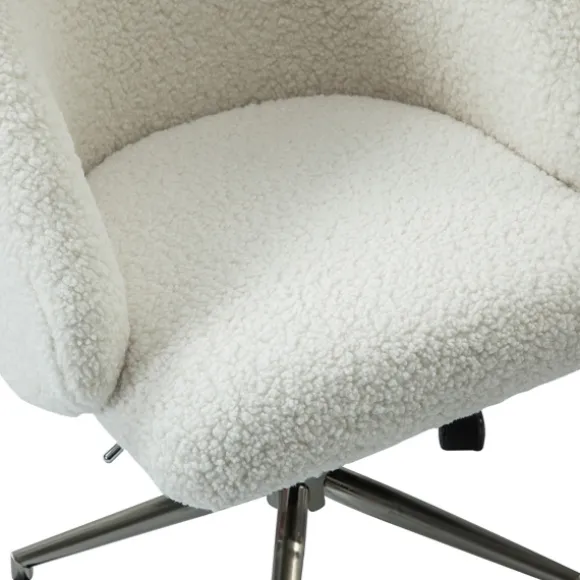 The White Sherpa Upholstered Swivel Office Chair Will Update Your Workspace With Midcentury Modern Flair. Its Cozy Fabric, Adjustable Height, And 360 Degree Rotation Ensures That You’Ll Be Completing Tasks With Ultimate Comfort. Chair Measures 24.5L X 24W X 31-35H In.; Seat Measures 18-22H In.Crafted Of Polyester And Ironhigh-Density Foam Fillupholstered In A White Sherpa Fabricsilver Base Finishadjustable Height360 Degree Rotationweight Capacity: 250 Lbs.Some Assembly Requirednot Intended For Commercial Usecare: Dust With A Soft, Dry Cloth.This Item Is Available At Kirklands.Com Only, Not Available In Stores. Please Note: This Item Cannot Be Shipped To Apo/Fpo Addresses.