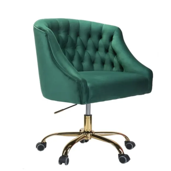 Makeover Your Home Office With Our Stunning Green Velvet Tufted Golden Leg Swivel Office Chair. You’Ll Love The Luxuriou…