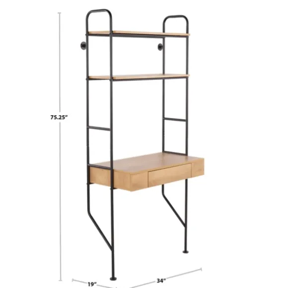 Turn Even Small Areas Into A Cozy Home Office Space! Our Wall-Mounted Steel And Blonde Wood Desk Features A Classy, Compact Design That’Ll Go Great With Your Industrial Style. Desk Measures 34L X 19W X 75.3H In.Crafted With A Steel Frame And A Wooden Tabletop And Shelvesblack Frame Finish With Blonde Wood Surfacesfeatures A Leaning, Wall-Mounted Designincludes With One (1) Drawer And Two (2) Shelvesweight Capacity: 100 Lbs.Some Assembly Requirednot Intended For Commercial Usecare: Wipe With A Soft, Damp Cloth.This Item Is Available At Kirklands.Com Only, Not Available In Stores. Please Note: This Item Cannot Be Shipped To Apo/Fpo Addresses.