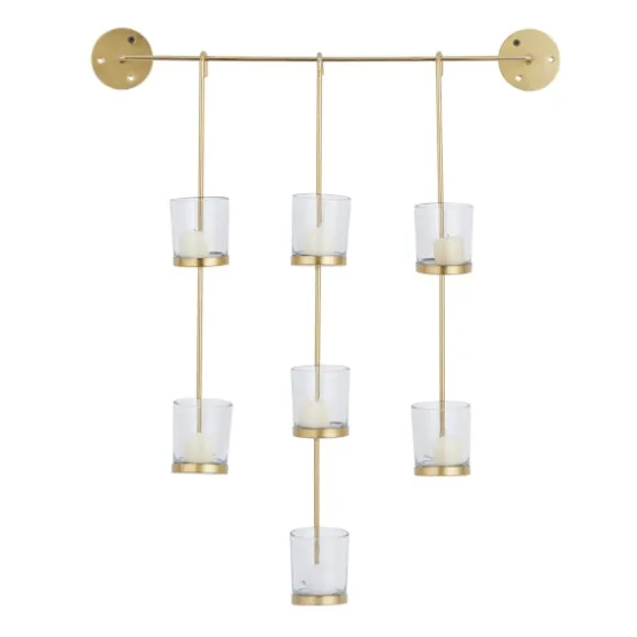 Catch The Eye Of Any Guest With This Charming Wall Plaque. The Gold Hanging Glass Votive Wall Plaque Is Sure To Light Up Your Home’S Walls With Style. Plaque Measures 23.13L X 5.5W X 26.5H In.Crafted Of Metal And Glasshues Of Goldhanging Designaccommodates Seven (7) Votive Candleshangs From Back-Mounted Hardwarecare: Wipe With A Damp Cloth.This Item Is Available At Kirklands.Com Only, Not Available In Stores. Please Note: This Item Cannot Be Shipped To Apo/Fpo Addresses.