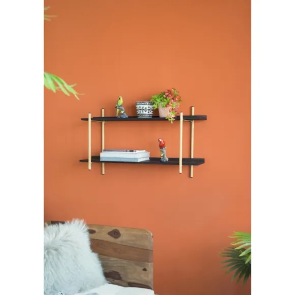 Be the first to review “Kirkland’s Home Shelves-Black Rattan Wrapped Double Tiered Wall Shelf” Cancel reply