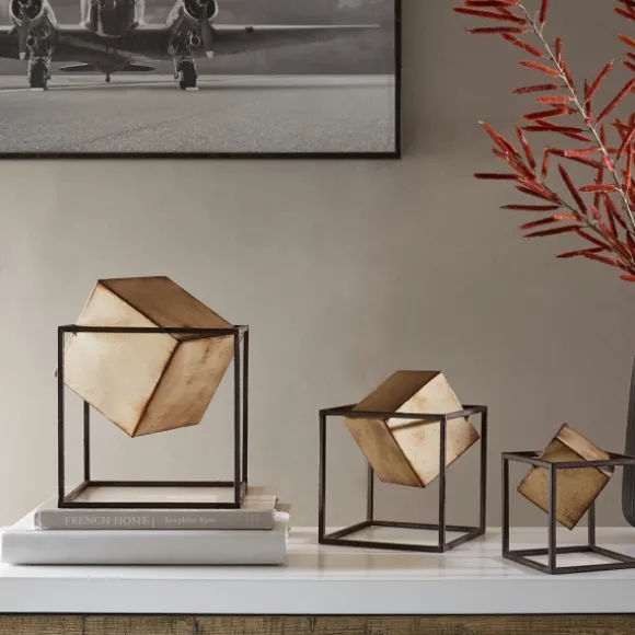 Mesmerize Your Guests With Our Gold Cube Quad Sculptures! Each Piece Features A Metal, Open Cube Design Housing A Floating Gold Cube For An Ultra Urban Look.Set Includes Three (3) Sculpturessmall Sculpture Measures 5.1L X 4.9W X 5.9H In.Medium Sculpture Measures 6.7L X 6.5W X 8.1H In.Large Sculpture Measures8.6L X 8.3W X 10H In.Crafted Of Metalopen Cube Designblack Frame Finishfeatures Floating Gold Cubes At Center Of Framesfor Decorative Use Onlycare: Dust With A Soft, Dry Cloth.This Item Is Available At Kirklands.Com Only, Not Available In Stores. Please Note: This Item Cannot Be Shipped To Apo/Fpo Addresses.