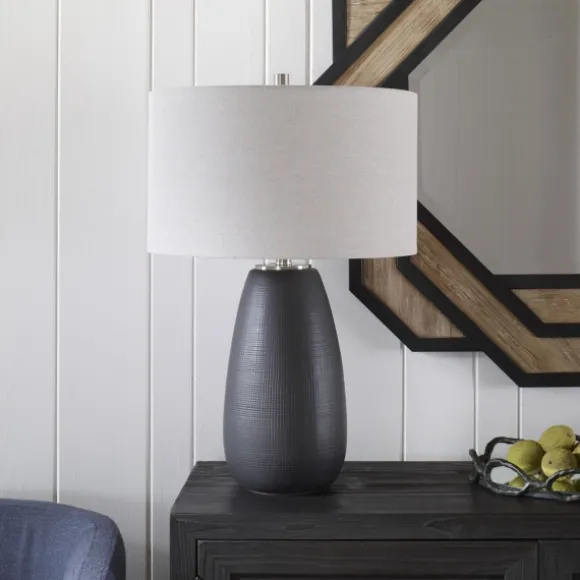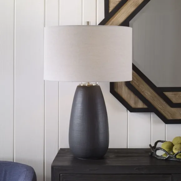 The Black Ceramic Gridline Table Lamp Light Up Any Tabletop With Modern Flair! With Its Satin Glazed Finish And Subtle Texture, It Balances An Understated Yet Chic Look. Lamp Measures 26.5H In.Crafted Of Ceramic, Steel, And Linensatin Black Glazed Finishround Base With Carved Gridline Textureaccented With Brushed Nickel Plated Detailshardback Drum Shade In Gray Linenshade Measures 10H X 17 In. In Diametersocket Accommodates A 150-Watt, Type A Bulbfeatures A Clear, Plug-In Cordcare: Dust With A Soft, Dry Cloth. Do Not Exceed Specified Wattage.This Item Is Available At Kirklands.Com Only, Not Available In Stores. Please Note: This Item Cannot Be Shipped To Apo/Fpo Addresses.Warning:Cancer And Reproductive Harm – For More Information Go Towww.P65Warnings.Ca.Gov .