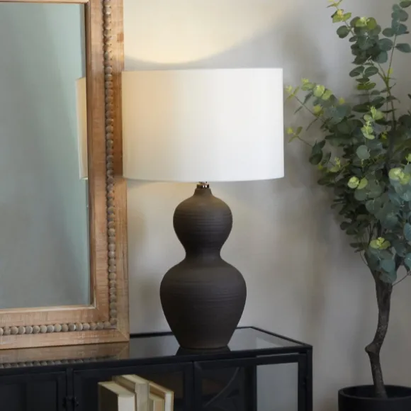 Illuminate Your Space In Style With Our Lovely Black Ceramic Hourglass Simple Large Table Lamp. You’Ll Love The Warm, Inviting Glow This Light Brings To Your Home. Lamp Measures 26H In.Crafted Of Ceramicblack Base Finishhourglass Jug Basehardback Drum Shade In White Fabricshade Measures 10H X 15 In. In Diameter (At Widest)Socket Accommodates One (1) 60-Watt Bulbfeatures A 66 In. Plug-In Cordcare:Dust With A Soft, Dry Cloth. Do Not Exceed Specified Wattage.This Item Is Available At Kirklands.Com Only, Not Available In Stores. Please Note: This Item Cannot Be Shipped To Apo/Fpo Addresses.
