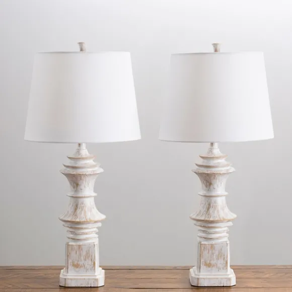 These Distressed Cream Carved Table Lamps Are The Perfect Pair For Your Bedside Tables Or The End Tables Beside Your Couch! You’Ll Love The Symmetry They Add To Your Decor.Set Includes Two (2) Lampseach Lamp Measures 31.5H In.Crafted Of Polyresindistressed Cream Finishcarved Baluster Basehardback Drum Shade In White Fabricshade Measures 11H X 15 In. In Diametersocket Accommodates A Three-Way, 100-Watt Bulbfeatures A Plug-In Cordcare:Dust With A Soft, Dry Cloth. Do Not Exceed Specified Wattage.Contact Your Local Kirkland’S Store For Availability. Quantities And Selection May Vary By Location.