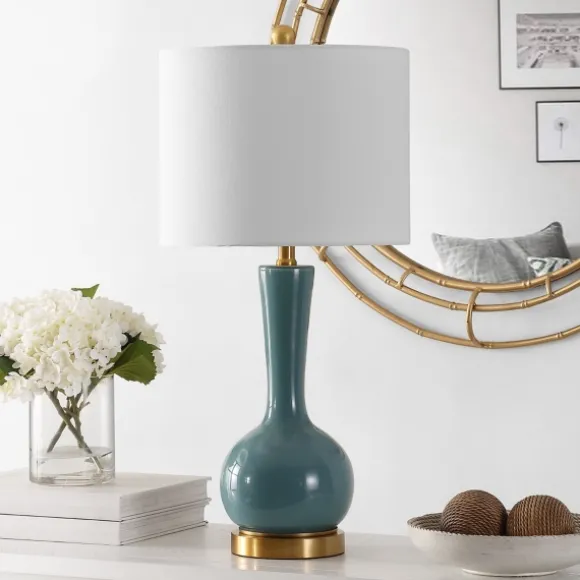 Illuminate Any Contemporary Setting With This Glazed Blue Glass Teardrop Table Lamp. Featuring Gold Accents That Contrast The Rich Blue Hue, It Balances A Modern Yet Traditional Look. Lamp Measures 27.5H In.Crafted Of Glassglazed Blue Finish With Gold Hardware Accentsteardrop Shaped Basesoftback Drum Shade In White Cottonshade Measures 10H X 13 In. In Diametersocket Accommodates A 100-Watt Type A Bulb, 23-Watt Cfl Bulb Or 12-Watt Led Bulbfeatures A Clear, Plug-In Cordcare: Dust With A Soft, Dry Cloth. Do Not Exceed Specified Wattage.This Item Is Available At Kirklands.Com Only, Not Available In Stores. Please Note: This Item Cannot Be Shipped To Apo/Fpo Addresses.Warning:This Product Can Expose You To Chemicals Including Dehp And Lead Which Is Known To The State Of California To Cause Cancer And Birth Defects Or Other Reproductive Harm.For More Information Go Towww.P65Warnings.Ca.Gov .