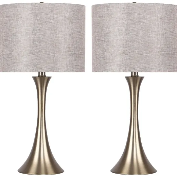 These Gold And Gray Tapered Table Lamps Will Bring A Modern Touch With Them Wherever The Go! Sleek And Eye-Catching, They’Ll Give Your Home A Fresh, Cohesive Look. Set Includes Two (2) Lampslamp Measures 24.25H In.Crafted Of Metalgold Finishtapered Hourglass Base Hardback Drum Shade In Metallic Gray Linenshade Measures 12 In. In Diametereach Accommodates A 100-Watt Bulbfeatures A Plug-In Cordcare: Dust With A Soft, Dry Cloth. Do Not Exceed Specified Wattage.This Item Is Available At Kirklands.Com Only, Not Available In Stores. Please Note: This Item Cannot Be Shipped To Apo/Fpo Addresses.Warning:Cancer And Reproductive Harm – For More Information Go Towww.P65Warnings.Ca.Gov .
