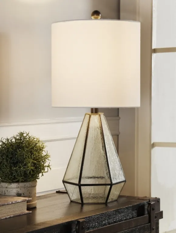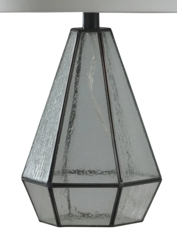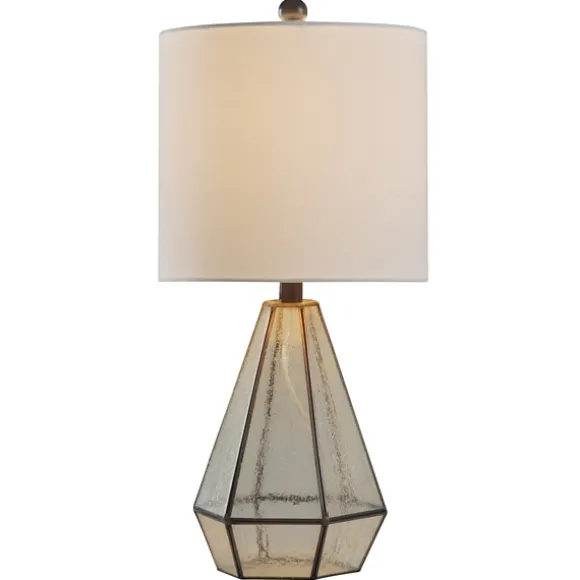 Indulge In The Imperial Design Of Our Metal And Seeded Glass Cage Table Lamp. You’Ll Love This Transparent Caged Design – That Won’T Clutter Your Accent Table Decor!Lamp Measures 23.25H In. Crafted Of Glass And Metal Clear, Seeded Glass Finish Geometric Cage Design With Aged Bronze Metal Trim Hardback Cylinder Shade In White Fabric Shade Measures 10.5H X 11 In. In Diameter At Widest Socket Accommodates A Three-Way 150-Watt Bulb Features A Clear 76 In., Plug-In Cord Care:Dust With A Soft, Dry Cloth. Do Not Exceed Specified Wattage.This Item Is Available At Kirklands.Com Only, Not Available In Stores. Please Note: This Item Cannot Be Shipped To Apo/Fpo Addresses.