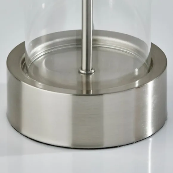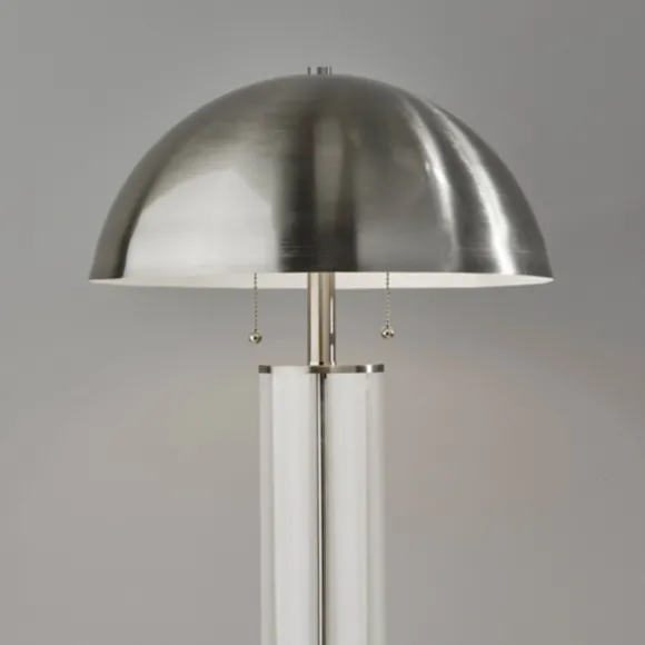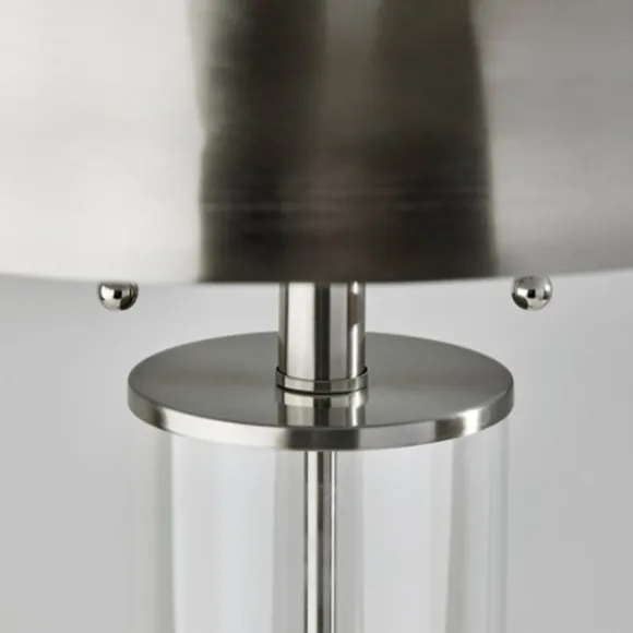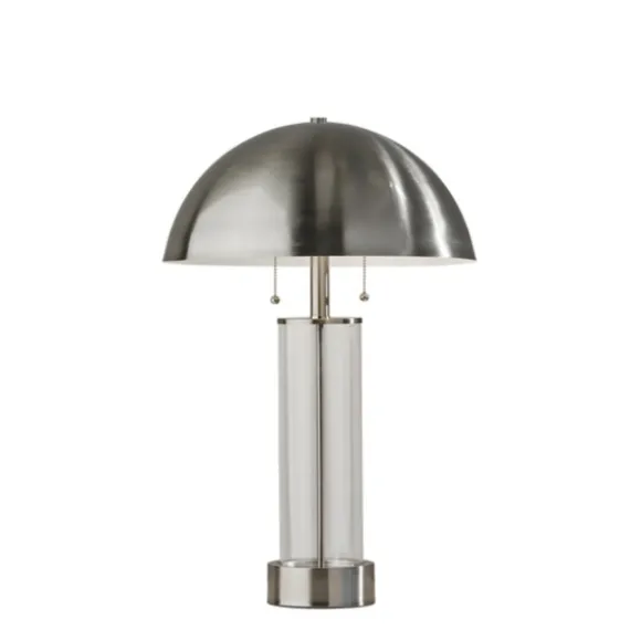 Light Up Any Nightstand Or Accent Table With This Silver Metal Dome And Clear Glass Table Lamp. It’S Sure To Add Polished, Mid-Century Modern Flair To Your Decor. Lamp Measures 25H In.Crafted Of Metalsilver Finishclear Glass Cylinder Basedome Shade In Black Metalshade Measures 7.4H X 16 In. In Diametersocket Accommodates A 40W, Type A Incandescent Bulbfeatures A Clear, Plug-In Cordcare: Dust With A Soft, Dry Cloth. Do Not Exceed Specified Wattage.This Item Is Available At Kirklands.Com Only, Not Available In Stores. Please Note: This Item Cannot Be Shipped To Apo/Fpo Addresses.