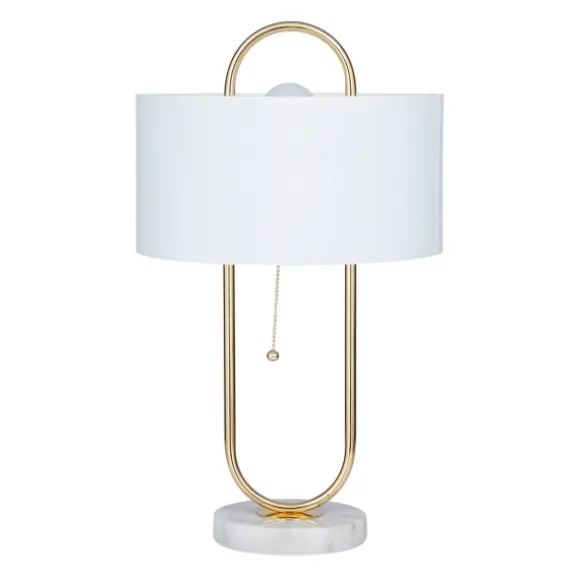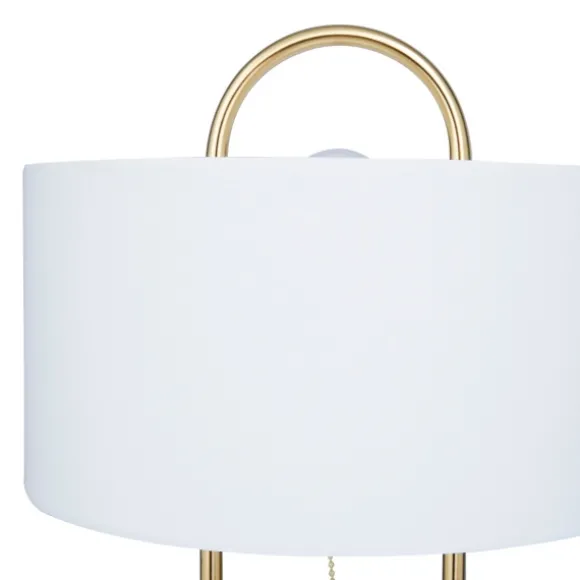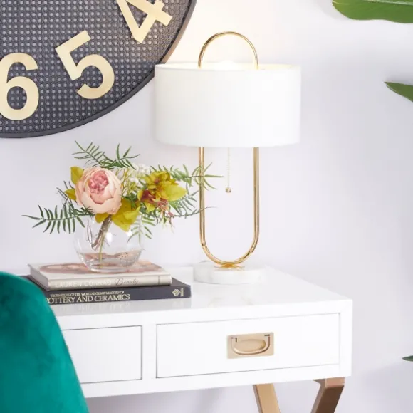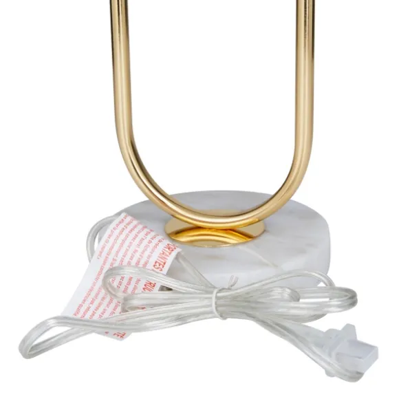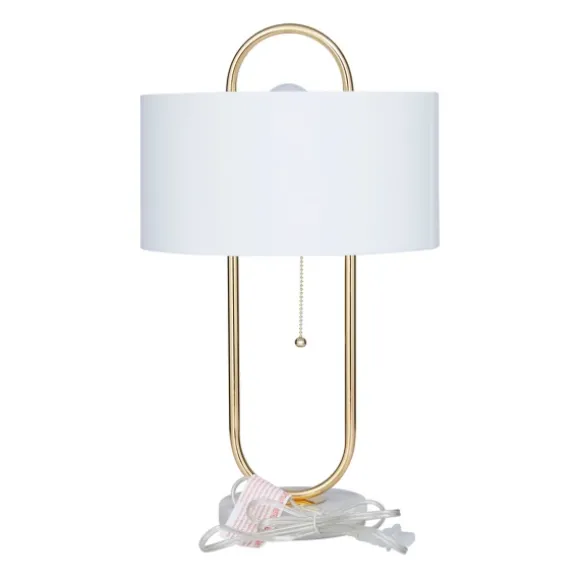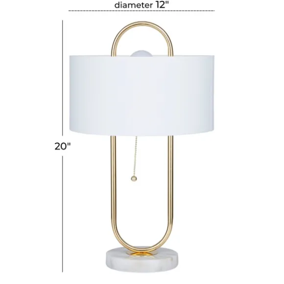 Illuminate Your Space In Style With Our Gold Metal Open Loop Stem White Round Table Lamp. You’Ll Love The Inviting Glow That This Lamp Brings To Your Home. Lamp Measures 20H In.Crafted Of Metalgold Finishoval Open Basehardback Drum Shade In White Fabricshade Measures 7H X 12 In. In Diameter (At Widest)Socket Accommodates A 100-Watt Bulbfeatures A Black Plug-In Cordcare:Dust With A Soft, Dry Cloth. Do Not Exceed Specified Wattage.This Item Is Available At Kirklands.Com Only, Not Available In Stores. Please Note: This Item Cannot Be Shipped To Apo/Fpo Addresses.