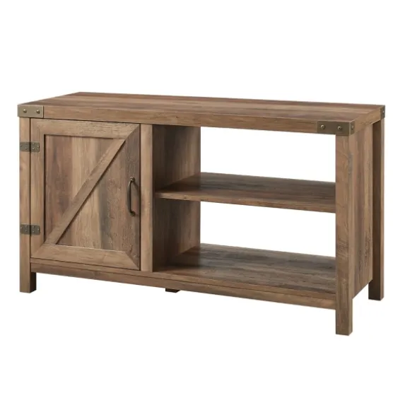 Kirkland’s Home Tv Stands & Media Consoles-Barn Door Rustic Oak Tv Stand With Open Shelves