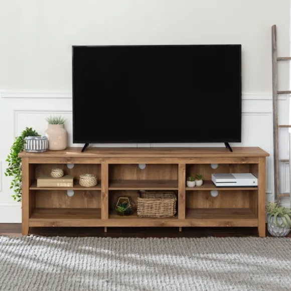 This Barnwood Tv Stand Balances Style And Function Effortlessly, Providing Needed Organization. You’Ll Have Plenty Of Space For Games, Movies, And Cable Boxes. Its Warm Wood Finish Is Sure To Enrich Your Space!Stand Measures 70L X 16W X 24H In. Crafted Of Warp-Resistant Wood Composite And Durable Laminate Barnwood Finish Features Three (3) Fixed Shelves And Three (3) Adjustable Shelves Each Compartment Features One (1) Cord Control Cutout Weight Capacity: 250 Lbs. Fits Tv Sizes Up To 85 In.Full Assembly Required Not Intended For Commercial Use Care: Dust With A Soft, Dry Cloth.This Item Is Available At Kirklands.Com Only, Not Available In Stores. Please Note: This Item Cannot Be Shipped To Apo/Fpo Addresses.