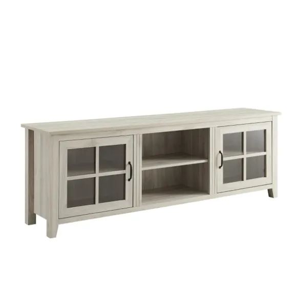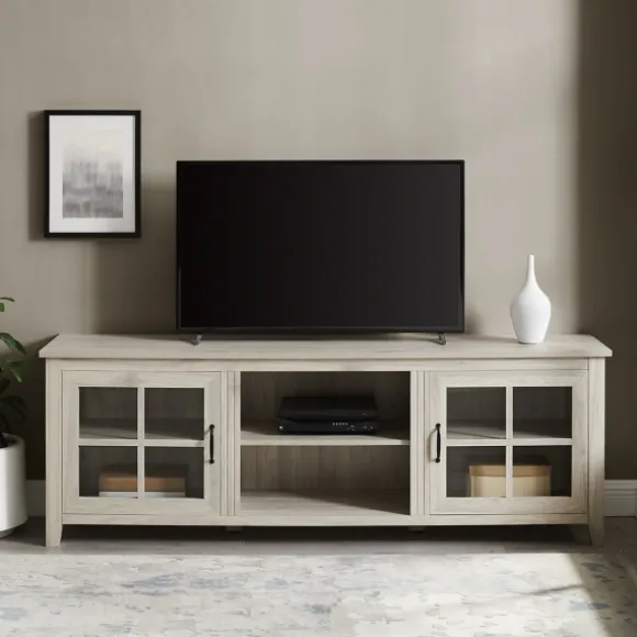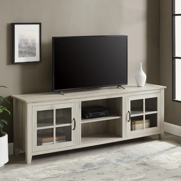Transform Your Living Room With Our Birch Wood And Glass Door Tv Stand. The Stylish And Spacious Design Gives You Plenty Of Spots For Storing Your Favorite Movies And Consoles. Media Stand Measures 70L X 16W X 20H In. Crafted Of Warp-Resistant Wood Composite, Durable Laminate, And Tempered Glass Birch Finish Weight: 90 Lbs. Fits Tv Sizes Up To 85 In.Full Assembly Required Not Intended For Commercial Use Care: Dust With A Soft, Dry Cloth.This Item Is Available At Kirklands.Com Only, Not Available In Stores. Please Note: This Item Cannot Be Shipped To Apo/Fpo Addresses. Warning:Cancer And Reproductive Harm – For More Information Go Towww.P65Warnings.Ca.Gov .