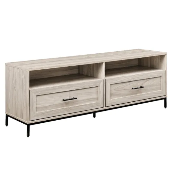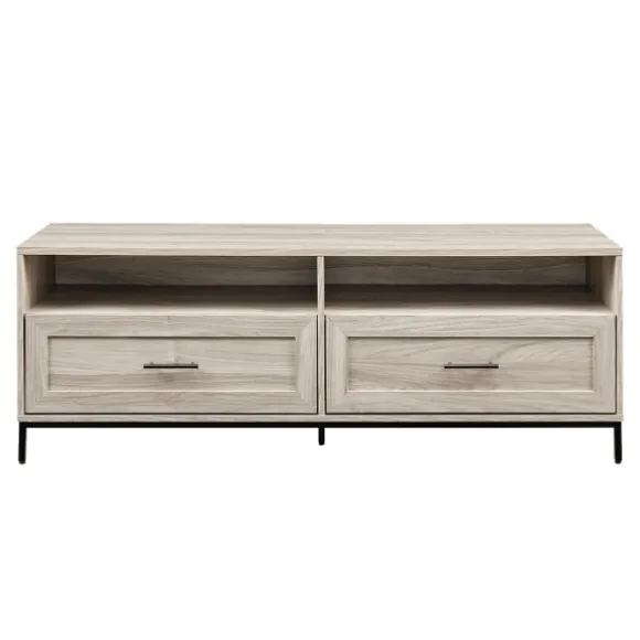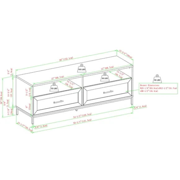 Display Your Television With Style With This Cream Wood 2-Drawer Tv Stand. Its Fresh Style Will Look Great In Your Living Room, While Its Drawers Will Give You Some Extra Storage For All Your Entertainment Accessories! Tv Stand Measures 56L X 15.75W X 20H In.Crafted Of Wood Compositecream Finishfeatures Two (2) Drawers And Two (2) Open Shelvesblack Metal Base And Drawer Pullsfeatures Two (2) Cord Management Portsweight Capacity: 150 Lbs.Assembly Requirednot Intended For Commercial Usecare: Dust With A Soft, Dry Cloth.This Item Is Available At Kirklands.Com Only, Not Available In Stores. Please Note: This Item Cannot Be Shipped To Apo/Fpo Addresses.Warning:This Product Can Expose You To Chemicals Including Dust And Phthalates, Which Is Known To The State Of California To Cause Cancer And Birth Defects Or Other Reproductive Harm.For More Information Go Towww.P65Warnings.Ca.Gov .