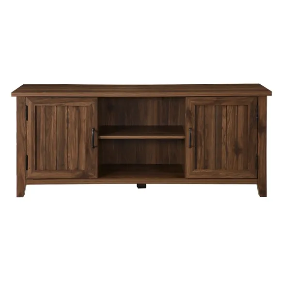 Your Favorite Show And Movie Looks Better If You Watch It Resting On A Stunning Stand. Our Dark Walnut Modern Farmhouse Tv Stand Adds A Touch Of Farmhouse Flair To Any Space, While Also Giving You Plenty Of Storage Place. Tv Stand Measures 58L X 16W X 24H In. Crafted Of Warp-Resistant Wood Composite, Durable Laminate, And Metal Walnut Finish Features Two (2) Doors And Three (3) Shelves Accommodates Tvs Up To 65 Inches Weight Capacity: 250 Lbs. Full Assembly Required Not Intended For Commercial Use Care: Dust With A Soft, Dry Cloth.This Item Is Available At Kirklands.Com Only, Not Available In Stores. Please Note: This Item Cannot Be Shipped To Apo/Fpo Addresses.