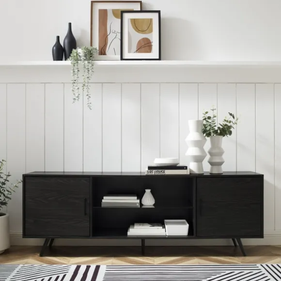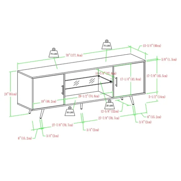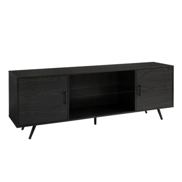 Complete Your Living Room Or Den With This Graphite 2-Door Glass Shelf Cabinet. Its Contemporary Style And Chic, Dark Finish Will Give Your Space An Updated Look! Plus Its Storage Space And Cord Ports Are Perfect For All You Entertainment Accessories!Cabinet Measures 70L X 15.75W X 24H In.Crafted Of Wood Composite, Metal, And Glassgraphite Gray Finishfeatures Two (2) Doors With Soft-Close Hinges And Two (2) Storage Compartmentsalso Features One (1) Glass Shelf And One (1) Wood Shelfangled, Metal Legsincludes Cord Management Portsweight Capacity: 150 Lbs.Full Assembly Requirednot Intended For Commercial Usecare: Spot Clean.This Item Is Available At Kirklands.Com Only, Not Available In Stores. Please Note: This Item Cannot Be Shipped To Apo/Fpo Addresses.Warning:This Product Can Expose You To Chemicals Including Dust And Phthalates, Which Is Known To The State Of California To Cause Cancer And Birth Defects Or Other Reproductive Harm.For More Information Go Towww.P65Warnings.Ca.Gov .