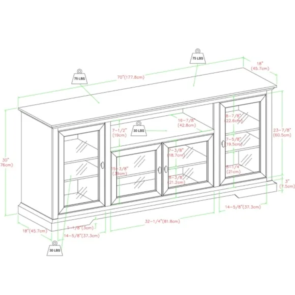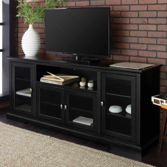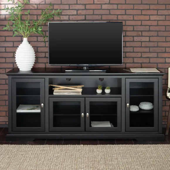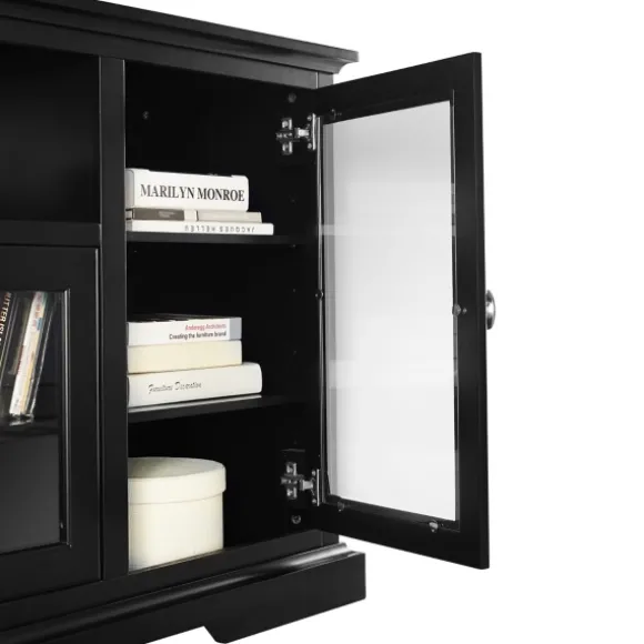 With A Versatile Design, This Matte Black Wood Highboy Tv Stand Can Make A Wonderful Accent Console In Your Entryway Or An Entertainment Center In Your Living Room. It Provides Plenty Of Storage Space Behind Glass Paneled Cabinets For Your Movies, Cds, And Electronics, Or Decor. The Adjustable Shelving Makes It Easy For You To Fit The Items You Need To, To Keep Your Living Space Clean. This Tv Stand Can Accommodate Most Flat-Panel Tvs Up To 85 Inches. Crafted From Manufactured Wood, This Media Console Has A Traditional Style That’S Timeless. Cabinet Measures 70L X 16W X 30H In.Crafted Of Wood Composite And Tempered Glassmatte Black Finishfeatures Four (4) Doors And Six (6) Shelvesaccented With Silver Metal Door Pullsaccommodates Tvs Up To 85 Inchesassembly Requirednot Intended For Commercial Usecare: Dust With A Soft, Dry Cloth.This Item Is Available At Kirklands.Com Only, Not Available In Stores. Please Note: This Item Cannot Be Shipped To Apo/Fpo Addresses.Warning:This Product Can Expose You To Chemicals Including Dust And Phthalates Which Is Known To The State Of California To Cause Cancer And Birth Defects Or Other Reproductive Harm.For More Information Go Towww.P65Warnings.Ca.Gov .