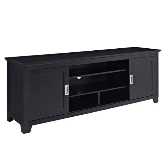 Enjoy Your Favorite Movies And Sports Games With This Matte Black Wood Sliding Doors Media Console. It Features Four Compartments To Provide You Ample Storage Space With Unique Sliding Wood Doors, Making It Easy To Reach Your Media Components And Accessories. This Console Is Constructed Of Warp-Resistant Mdf And Wood Veneers And Supports Tvs Up To 85 Inches. It’S Perfect For Your Bedroom Or Living Room With A Rich Finish To Fit Your Home Decor. Console Measures 70L X 18W X 25H In.Crafted Of Wood Composite And Veneermatte Black Finishfeatures Two (2) Sliding Doors And Four (4) Storage Compartmentsremovable Shelvingaccented With Silver Metal Door Hardwareweight Capacity: 250 Lbs.Assembly Requirednot Intended For Commercial Usecare: Dust With A Soft, Dry Cloth.This Item Is Available At Kirklands.Com Only, Not Available In Stores. Please Note: This Item Cannot Be Shipped To Apo/Fpo Addresses.Warning:This Product Can Expose You To Chemicals Including Dust And Phthalates Which Is Known To The State Of California To Cause Cancer And Birth Defects Or Other Reproductive Harm.For More Information Go Towww.P65Warnings.Ca.Gov .