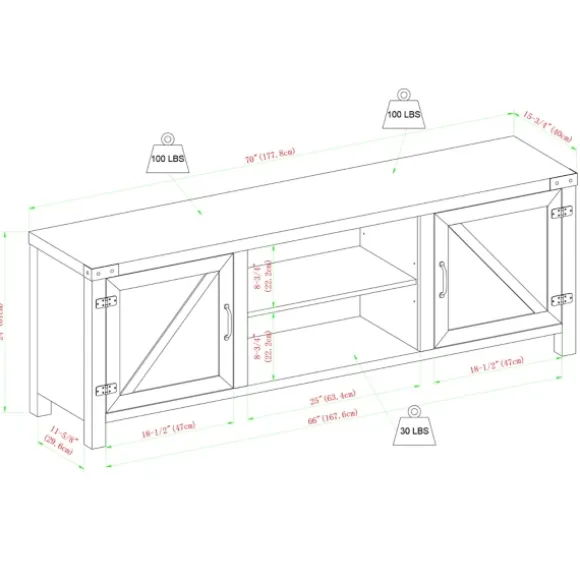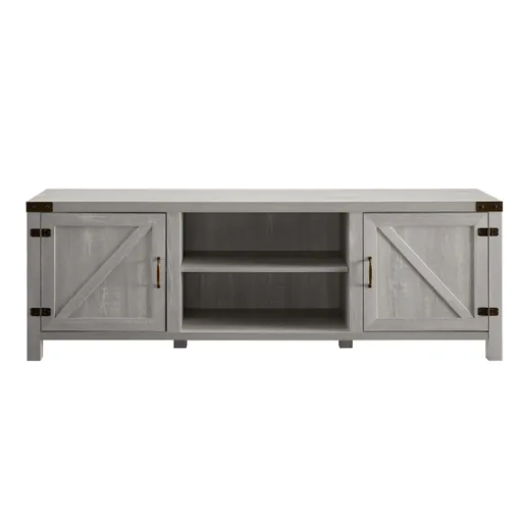 This Stone Gray Barn Door Tv Stand Balances Style And Function Effortlessly, Providing Needed Organization. You’Ll Have Plenty Of Space For Movies, Games, And Cable Boxes. Its Light Wood Finish Is Sure To Enrich Your Space!Stand Measures 70L X 16W X 24H In. Crafted Of Warp-Resistant Wood Composite, High-Quality Laminate, And Metal Stone Gray Wood Finish Features One (1) Fixed Shelf And Two (2) Doors For Storage Barn Door Front Design Antique Bronze Metal Hinge And Handle Hardware Fits Tv Sizes Up To 85 In.Full Assembly Required Not Intended For Commercial Use Care: Dust With A Soft, Dry Cloth. This Item Is Available At Kirklands.Com Only, Not Available In Stores. Please Note: This Item Cannot Be Shipped To Apo/Fpo Addresses.