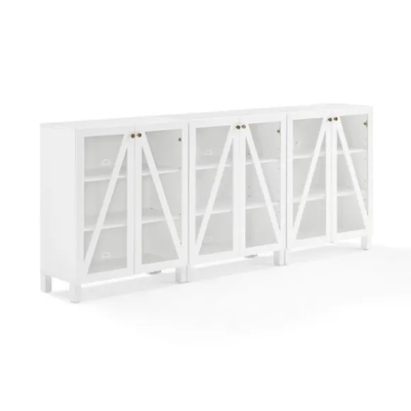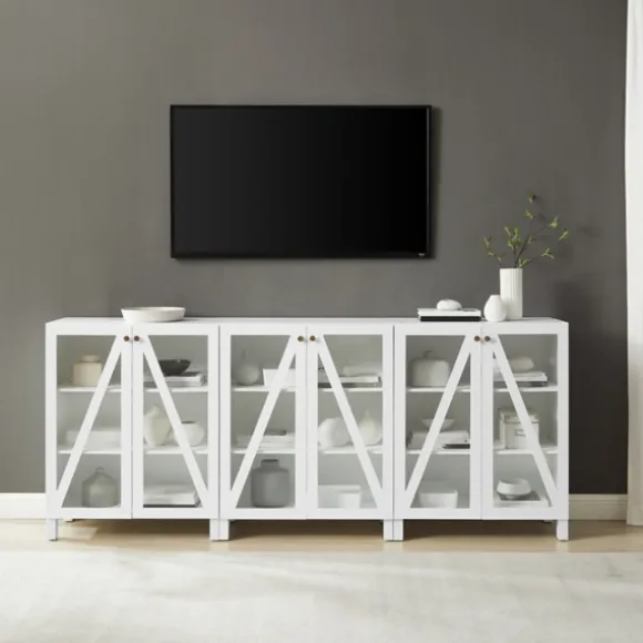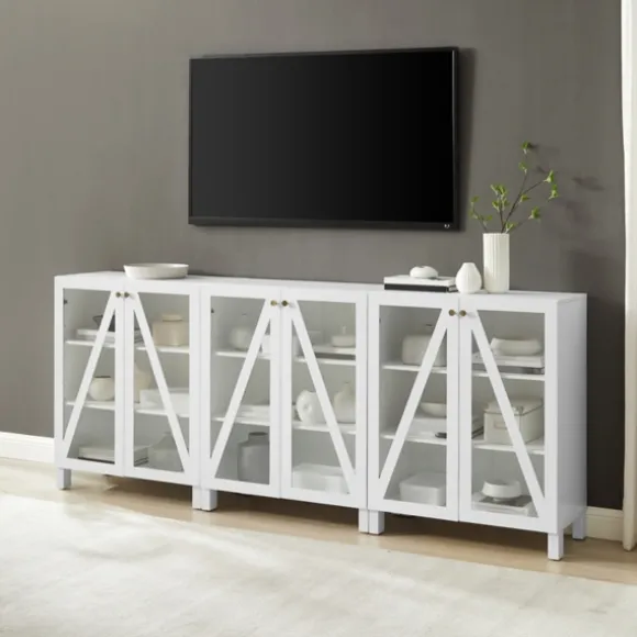 Create The Perfect Entertainment Set Up With This White Triangle 6-Door Wood Media Cabinet. Its Ample Storage Space And Cord Management Holes Make It Ideal For Displaying Decor And Storing Media Accessories!Cabinet Measures 90L X 16W X 38H In.Crafted Of Wood And Glasswhite Finishfeatures Four (4) Doors, Six (6) Adjustable Shelves, And Three (3) Fixed, Lower Shelvesdoors Feature A Triangle Designbrass Metal Hardwareincludes Six (6) Perforated Cable Management Holesshelf Weight Capacity: 15 Lbs. Eachassembly Requirednot Intended For Commercial Usecare: Dust With A Soft, Dry Cloth.This Item Is Available At Kirklands.Com Only, Not Available In Stores. Please Note: This Item Cannot Be Shipped To Apo/Fpo Addresses.Warning:This Product Can Expose You To Chemicals Including Wood Dust And Lead, Which Is Known To The State Of California To Cause Cancer And Birth Defects Or Other Reproductive Harm.For More Information Go Towww.P65Warnings.Ca.Gov .