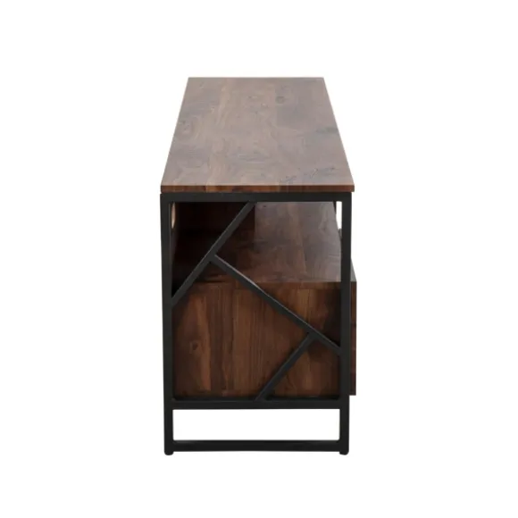 Kirkland’s Home Tv Stands & Media Consoles-Walnut Wood And Black Steel Media Stand