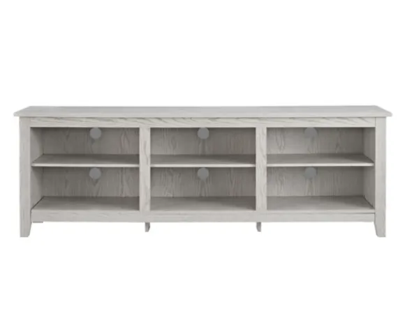 This Whitewashed Wood Tv Stand Balances Style And Function Effortlessly, Providing Needed Organization. You’Ll Have Plenty Of Space For Movies, Games, And Cable Boxes. Its Light Wood Finish Is Sure To Enrich Your Space!Stand Measures 70L X 16W X 24H In. Crafted Of Warp-Resistant Wood Composite And Durable Laminate Whitewashed Wood Finish Features Two (2) Fixed Shelves And Two (2) Adjustable Shelves Each Compartment Features One (1) Cord Control Cutout Weight Capacity: 250 Lbs. Fits Tv Sizes Up To 85 In.Full Assembly Required Not Intended For Commercial Use Care: Dust With A Soft, Dry Cloth.This Item Is Available At Kirklands.Com Only, Not Available In Stores. Please Note: This Item Cannot Be Shipped To Apo/Fpo Addresses.