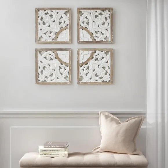 Our White And Brown 4-Pc. Medallion Plaque Will Make A Rustic Statement In Any Home! You’Ll Love How This Plaque Elevates And Brightens Up Your Space.Plaque Includes Four (4) Pieceseach Piece Measures 14.75L X 1.25W X 14.75H In.Crafted Of Fir Woodwhite Finishtan Frame Finishpieces Come Together To Form A Medallion Designhangs From Back-Mounted Hardwarecare: Dust With A Soft, Dry Cloth. This Item Is Available At Kirklands.Com Only, Not Available In Stores. Please Note: This Item Cannot Be Shipped To Apo/Fpo Addresses.