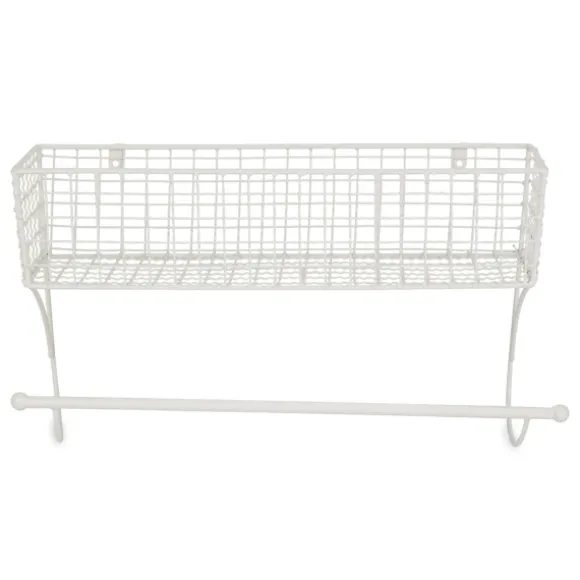 Add Storage And Style To Your Wall With This Elegant Towel Rack. The Antique White Wire Basket Towel Rack Has The Space And Striking Look You Need. Rack Measures 17L X 5.5W X 9.85H In.Crafted Of Metalhues Of Whitebasket Designhangs From Back-Mounted Hardwarecare: Spot Clean Only.This Item Is Available At Kirklands.Com Only, Not Available In Stores. Please Note: This Item Cannot Be Shipped To Apo/Fpo Addresses.