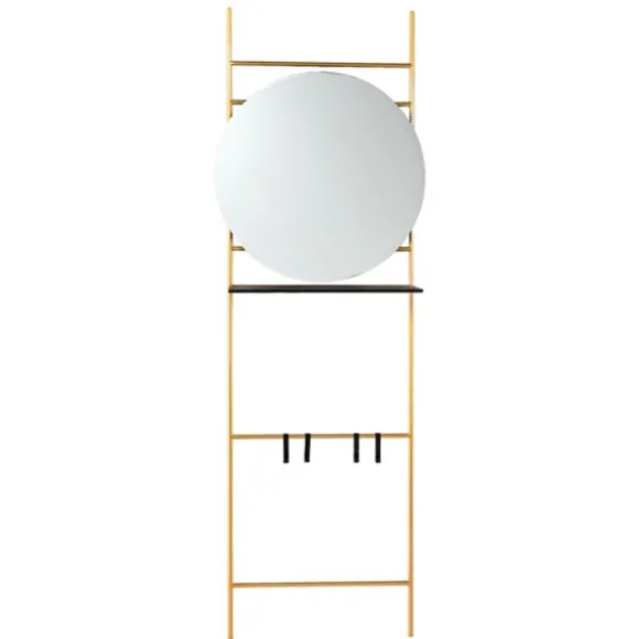 This Hall And Entryway Ladder Wall Organizer Is A Modern-Chic Way To Keep Track Of Your On-The-Go Essentials. Plus, You Can Take One Last Look In The Mirror Before Heading Out The Door! Organizer Measures 23.75L X 7.25W X 71H In.Crafted Of Mirror And Irongold Finishladder Designfeatures One (1) Mirror, One (1) Shelf, And Four (4) Hooksweight: 17 Lbs.Shelf Weight Capacity: 5 Lbs.Hook Weight Capacity: 3 Lbs. Eachhangs From Back-Mounted Hardwarecare: Dust With A Soft, Dry Cloth.This Item Is Available At Kirklands.Com Only, Not Available In Stores. Please Note: This Item Cannot Be Shipped To Apo/Fpo Addresses.Warning:This Product Can Expose You To Chemicals Including Lead Which Is Known To The State Of California To Cause Cancer And Birth Defects Or Other Reproductive Harm.For More Information Go Towww.P65Warnings.Ca.Gov .