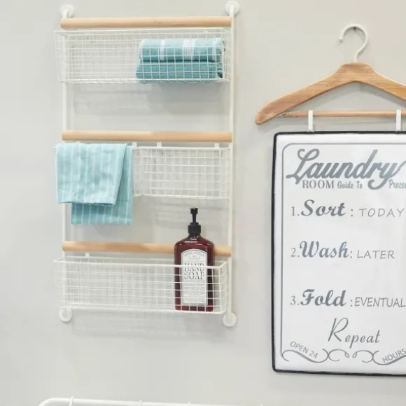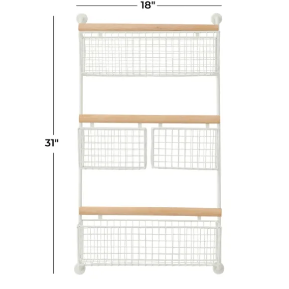 Enhance The Farmhouse Feel Of Your Space With This White Metal 4-Basket Wall Shelf. Offering Plenty Of Space For Linens And Decor, Its Organizing Possibilities Are Endless! Plaque Measures 18L X 6W X 31H In.Crafted Of Metal And Woodwhite Metal Finishbrown Wood Rod Finishfeatures Four (4) Hanging Basketsrectangular Shape With Curved Sidesweight: 4 Lbs.Hangs From Back-Mounted Hardwarecare: Dust With A Soft, Dry Cloth.This Item Is Available At Kirklands.Com Only, Not Available In Stores. Please Note: This Item Cannot Be Shipped To Apo/Fpo Addresses.Warning:Cancer And Reproductive Harm – For More Information Go Towww.P65Warnings.Ca.Gov .