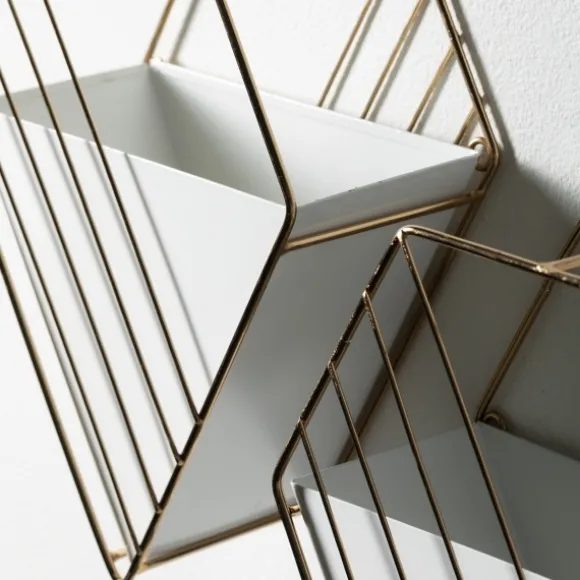 Add Some Dimension To Your Walls With These White And Gold Metal Wall Pockets. They’Re Perfect For Stylish Storage Or Ev…